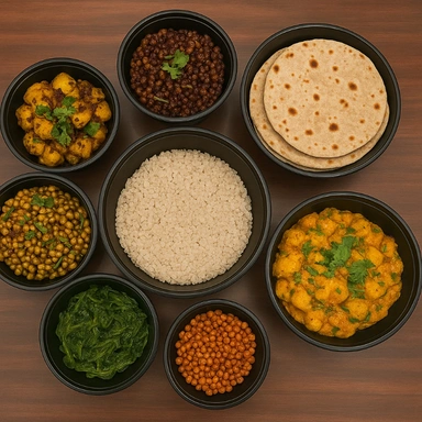 Ghuguni, Bhaji, Rice Meal