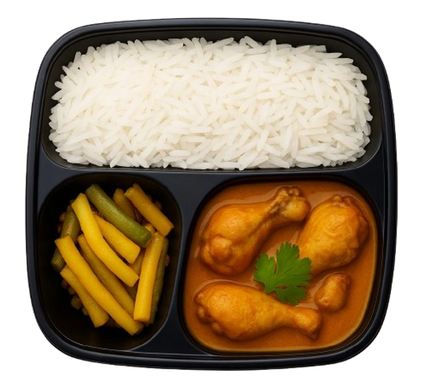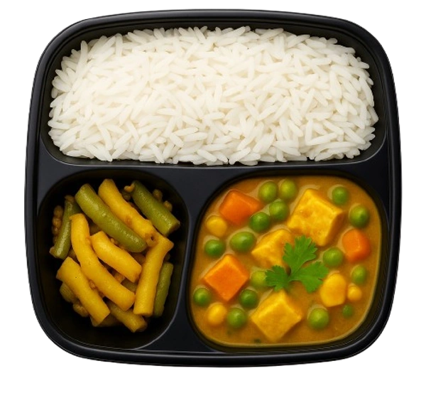 Egg Curry, Bhaji, Rice Meal