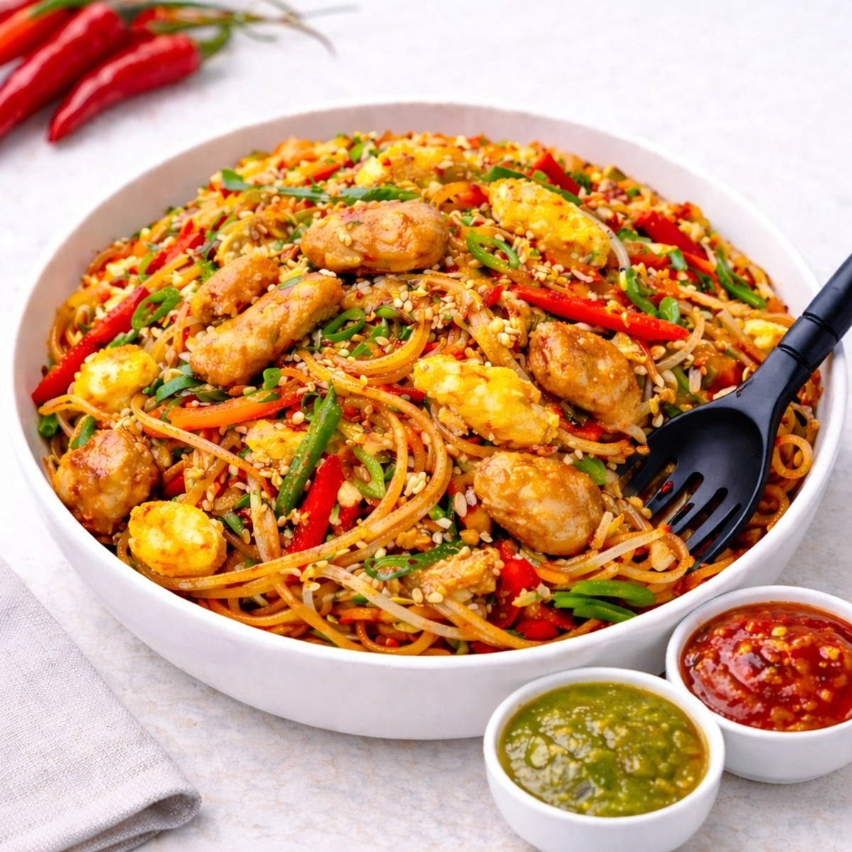 Craving a hearty, flavorful, and satisfying meal? Look no further than our Mix Chowmein (Egg + Chicken) from 360 ROTI WALA! This dish is a perfect combination of tender chicken, protein-rich egg, and perfectly stir-fried noodles, delivering a burst of taste in every bite. Expertly cooked to perfection, this chowmein is sure to tantalize your taste buds and leave you wanting more.